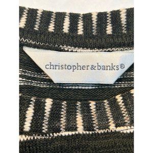Christopher & Banks Womens Long Sleeve Green White Stripe Sweater Size Large