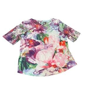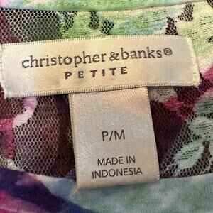 Christopher & Banks Women's Medium Petite Floral Top Lace Sleeve Fitted Shirt