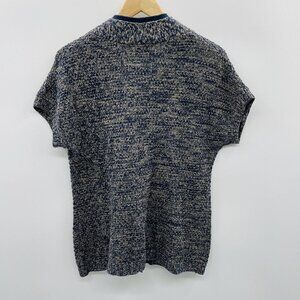 Christopher & Banks Women's Short Sleeve Marled Cardigan Sweater with Buckle in Blue/Tan