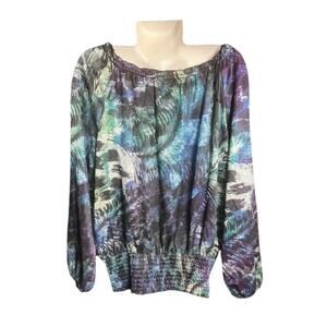 Christopher & Banks Women's Multicolor Ruffle Neck Smocked Waist Blouse Size XL