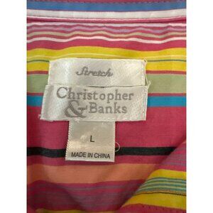 Christopher & Banks Womens Multicolor Striped Button-Up Shirt L Stretch Colorful