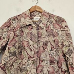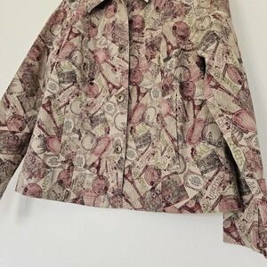 Christopher & Banks Womens Paris Print Denim Jacket Size M Eiffel Tower Stretch