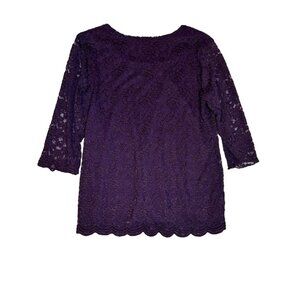 Christopher & Banks Women's Purple Lace 3/4 Sleeve Top L Formal