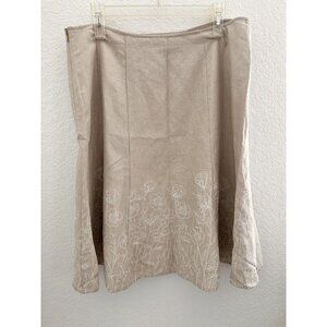Christopher & Banks Women's Skirt 12 Tan Linen Embroidered Cottagecore Fairy