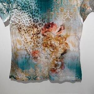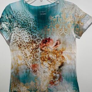 Christopher & Banks Women's Teal Gold Embellished Short Sleeve T-Shirt Size Small