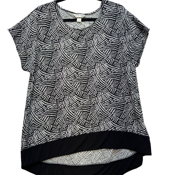 Christopher & Banks Womens Tunic Top Blouse XL Black & White Abstract Pattern