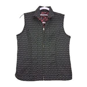 Christopher & Banks Vest Full Zip Reversible Red Black Floral Paisley and Black White Geo Print Quilted.