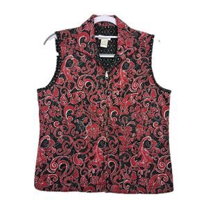 Christopher Banks Womens Vest Reversible Paisley Floral Red Black Quilted Medium