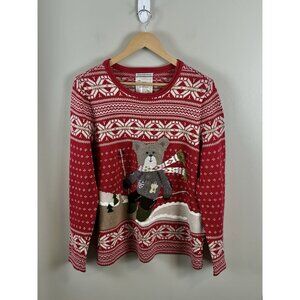 Christopher Banks Women’s XL Hand Embroidered Holiday Christmas Sweater Bear