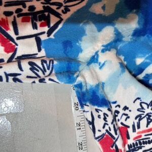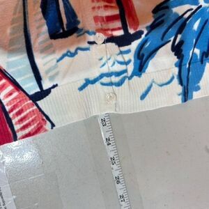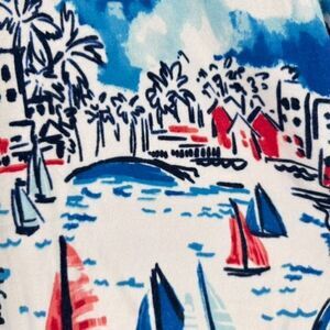 - Tropical/vacation print with palm trees, houses, and sailboats.