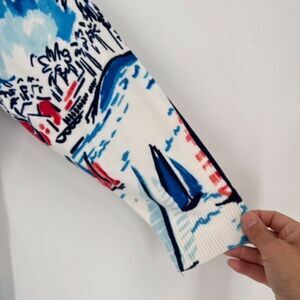 Christopher & Banks Women's Sailboat Beach Print Cardigan Sweater Blue Medium