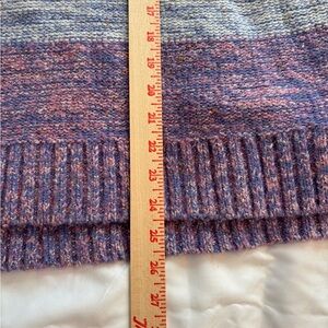 Christopher & Banks women’s cowl neck pullover sweater in soft multicolor knit with shades of lavender, blue, and teal.