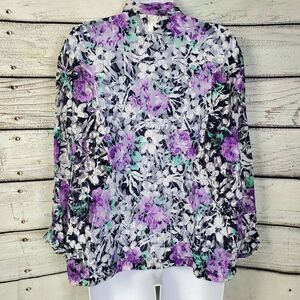 Christopher & Banks XL Purple Floral Lace Button Front Blouse Sheer Lightweight