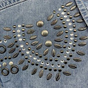 Christopher & Banks XL Western Blue Beaded Detail Shirt Roll Tab Sleeve