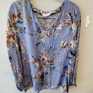 Christopher & Banks blue floral flowy feminine pin tucked blouse plus size 2X