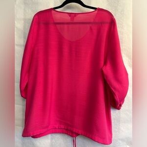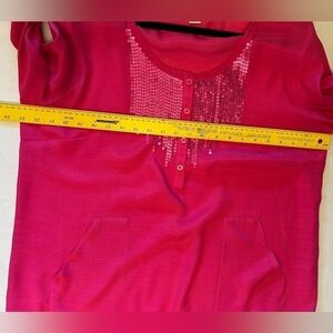 Christopher & Banks sequined Pink Fuchsia blouse top w/drawstring waistSz-XL V17