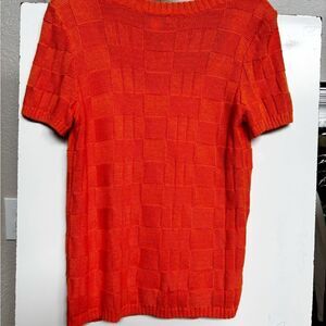 Christopher & Banks short sleeve orange sweater three buttons with white under shirt attached to the sweater fully opens and excellent condition size small