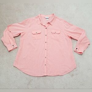 Christopher & Banks woman Petite P/XL Textured Button-Up Shirt Pink 100% Cotton
