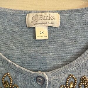 Christopher& Banks-2X-blue-button up, 3/4 sleeve, embellished, cardigan sweater.