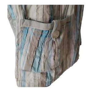 Christopher & Banks Stretch Blue Brown Crinkle Jacket Size L Button-Up Pockets