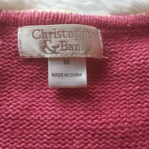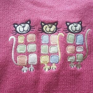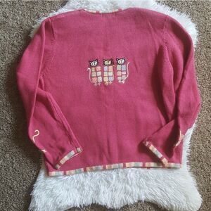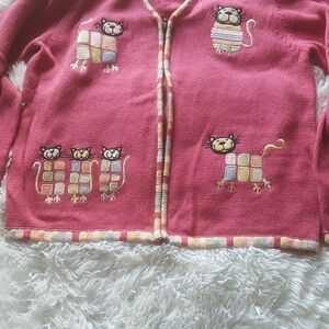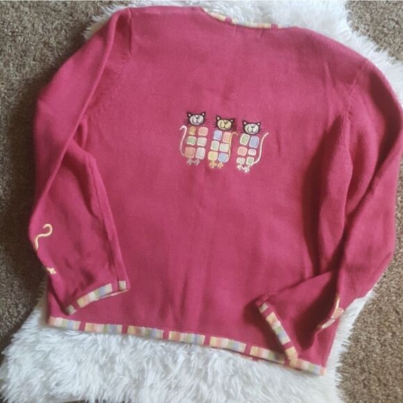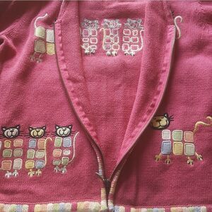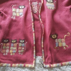Christopher & Banks embroidered pink Cat Sweater Jacket Shacket Size Medium