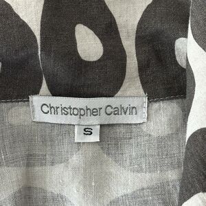 Christopher Calvin Linen Top Small Beige Gray Geometric Shirt Lagenlook Modern