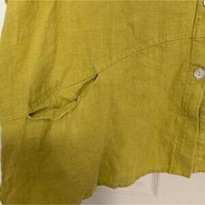 Christopher Calvin Womens 100% Linen Chartreuse Yellow Lagenlook Oversized Tunic Shirt Size Small