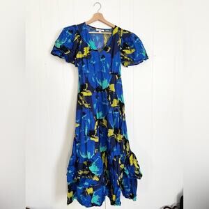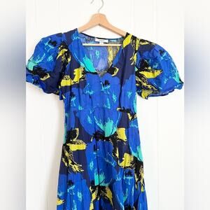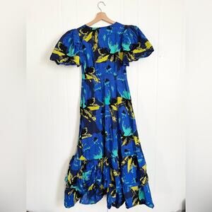 Christopher John Rogers Floral Puff Sleeve Tiered Dress Blue Women’s Sz 2