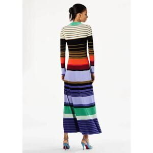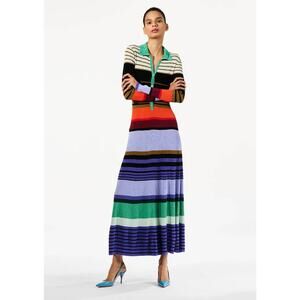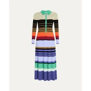Christopher John Rogers Striped Ribbed LS Maxi Polo Dress in Arsenic Multi XS