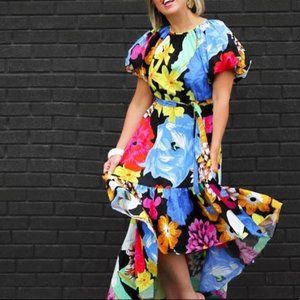 Christopher John Rogers Woman Floral High Low Dress Small Puff Sleeve Bright New