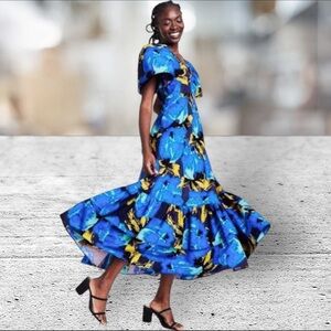 Christopher John Rogers for Target Blue Floral Puff Sleeve Dress Size 24 / 26