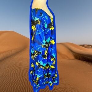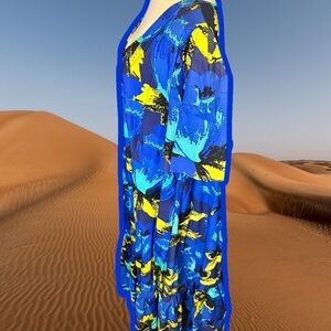 Abstract floral print in royal blue, navy, teal and electric yellow
