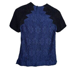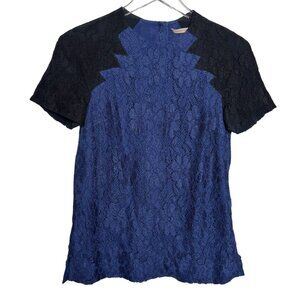 Christopher Kane Lace top blue and black size 4 short sleeves