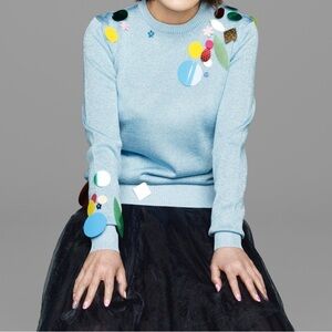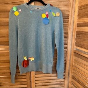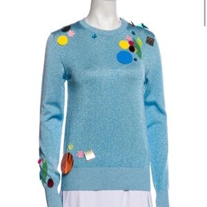 Christopher Kane Pullover, Graphic design on, Sequin & Glitter Accents, Long Sleeve with Crew Neck