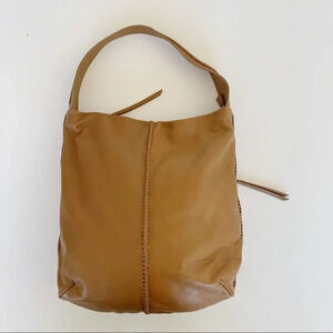 Christopher Kon Caramel Leather Hobo Bag Boho Tan Slouchy 70s Vibes Whipstitch