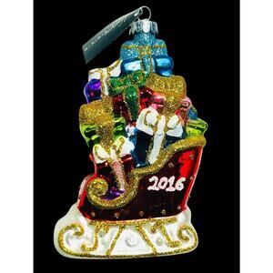 Christopher Radko 2016 Celebrations Sleigh Gifts Glass Christmas Ornament w Box