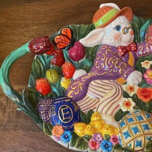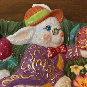 Christopher Radko 3D Dapper Hare Easter Bunny Handled Platter RARE