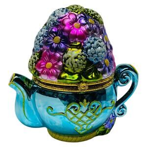 Christopher Radko Hinged Porcelain Trinket Teapot 2006 Spring is Served Floral Bouquet Design 6" - A689