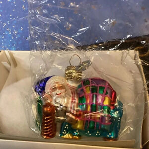 Christopher Radko A SHORT WINTERS NAP GEM Glass Ornament Santa Bed New