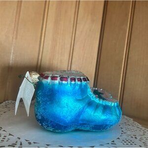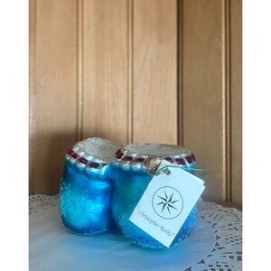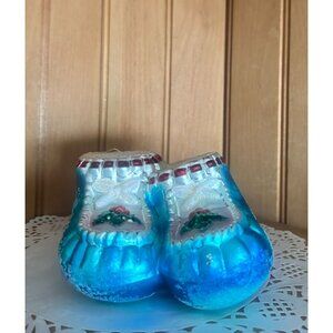Christopher Radko Blue Baby Booties Glass Ornament Holiday Collectible Handcraft