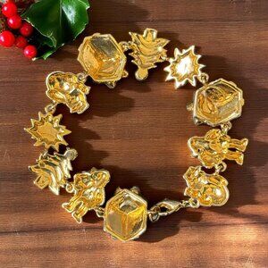 Christopher Radko Charm Bracelet Signed Shiny Brite Santa Christmas Gift Holiday