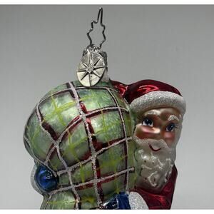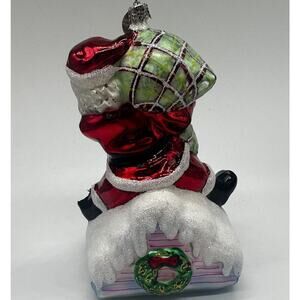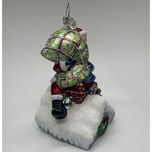 Christopher Radko Christmas Ornament Santa Eave’s Dropping On Roof w/ Presents. In good condition, see photos.