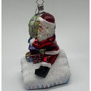 Christopher Radko Christmas Ornament Santa Eave’s Dropping On Roof w/ Presents