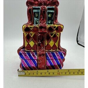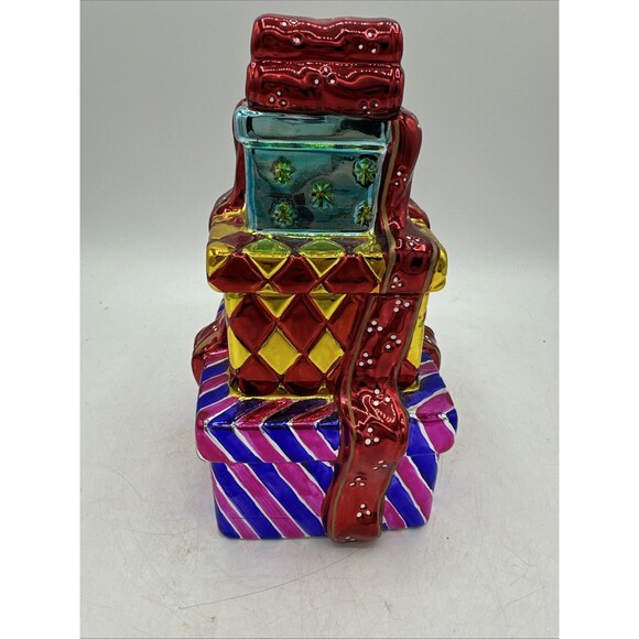 Beautiful holiday decor! Shiny, colorful tower of gifts. 2006. In excellent condition. No chips or cracks. Extremely minimal wear. Great to use as a gift box or simply holiday decorations. Shipped with great care. Thank you for viewing the site and visiting my store!