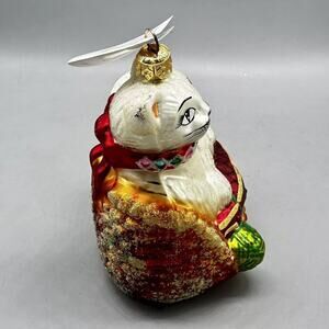 Christopher Radko Persian Cat On Bed w/Yarn Christmas Ornament (With Tag No Box)