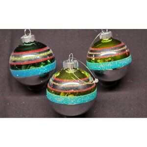 This is a set of 3 striped Christopher Radko Shiny Brite vintage style glass Christmas ornaments.  These are preowned with some signs of wear such as glitter loss.  Please review photos as a part of the description.