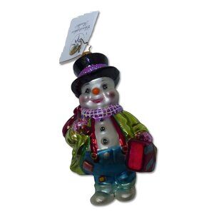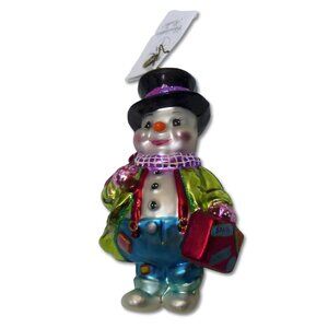 Vintage Snobo - cute traveling snowman ornament from Christopher Radko. This is new in box and about 22 years old - I never had a chance to use it. Snobo is 6" tall and comes in his original box. The box itself had a shop label sticker on the inside lid - I peeled it off but some residue remains.