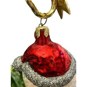 This handcrafted Santa Claus ornament adds a festive touch to your holiday decor. Made with intricate details and glitter accents, it's a charming vintage piece.