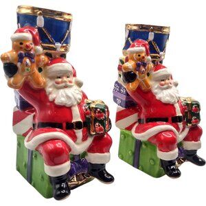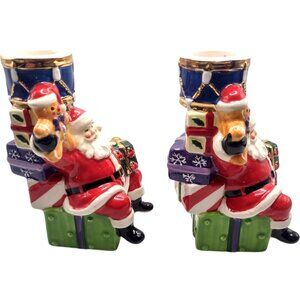 Christopher Radko Splendid Santa Candle Holders Hand-Painted 5" Ceramic 2013