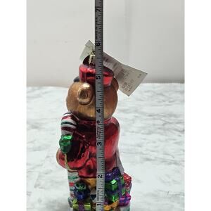 The Christopher Radko Taylor Teddy Bear Lord & Taylor Ornament is a handmade, blown glass Christmas ornament featuring a multicolor teddy bear design. Manufactured in 2001, this unique ornament from the Lord & Taylor franchise is part of the Christopher Radko collection of ornaments. It stands at 5.5 inches tall and is a single, original piece that captures the theme of Christmas and holiday spirit. Made in Poland, this collectible ornament is a charming addition to any Christmas decor collection.